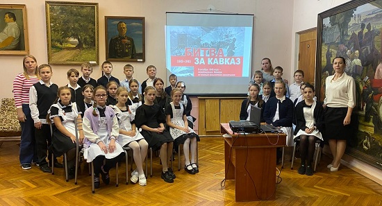 8 октября работники культуры совместно с сотрудниками картинной галереи провели познавательное мероприятие, для учащихся 5 «Б» класса МБОУ СОШ №13, посвящённое одним из ключевых сражений Великой Отечественной войны — битве за Кавказ.