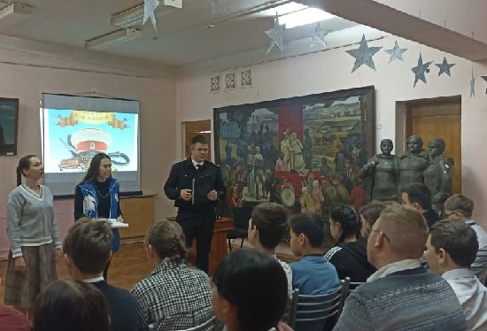 На мероприятии выступил приглашённый гость — специалист отдела по работе с казачьей молодежью Каневского районного казачьего общества Никита Алексеевич Джунь. Он провёл содержательную беседу о казачьей истории и культуре, а также показал документальный фильм «Казаки», который помог ребятам глубже понять традиции и роль казаков в истории Кубани и России.