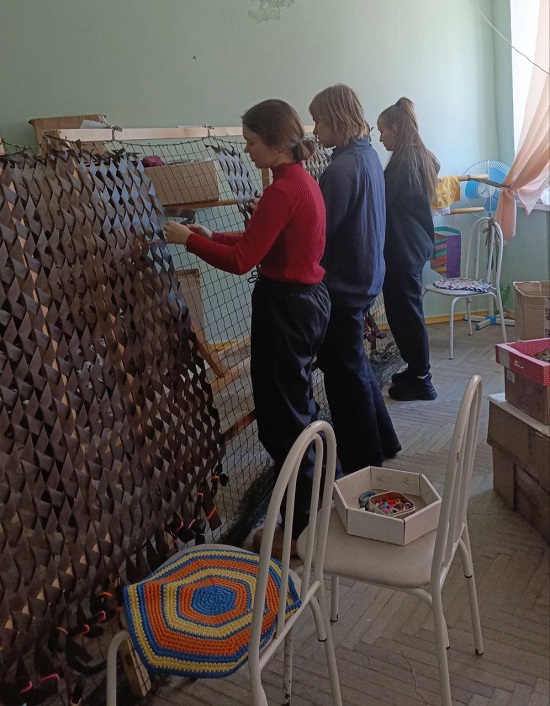 Одним из ключевых направлений деятельности группы является плетение маскировочных сетей.