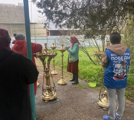 2 апреля сотрудники Дома культуры и неравнодушные жители станицы Привольной приняли участие в субботнике в Храме Вознесения Господня.